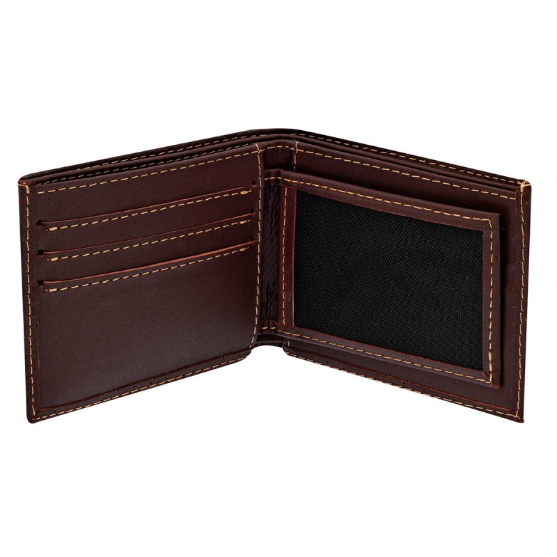 De estilo Causal/Formal. Rígida pero suave al tacto. Con espacio trasero para billetes. Compartimientos frontales para tarjetas. Bolsillo con red y logo externo.