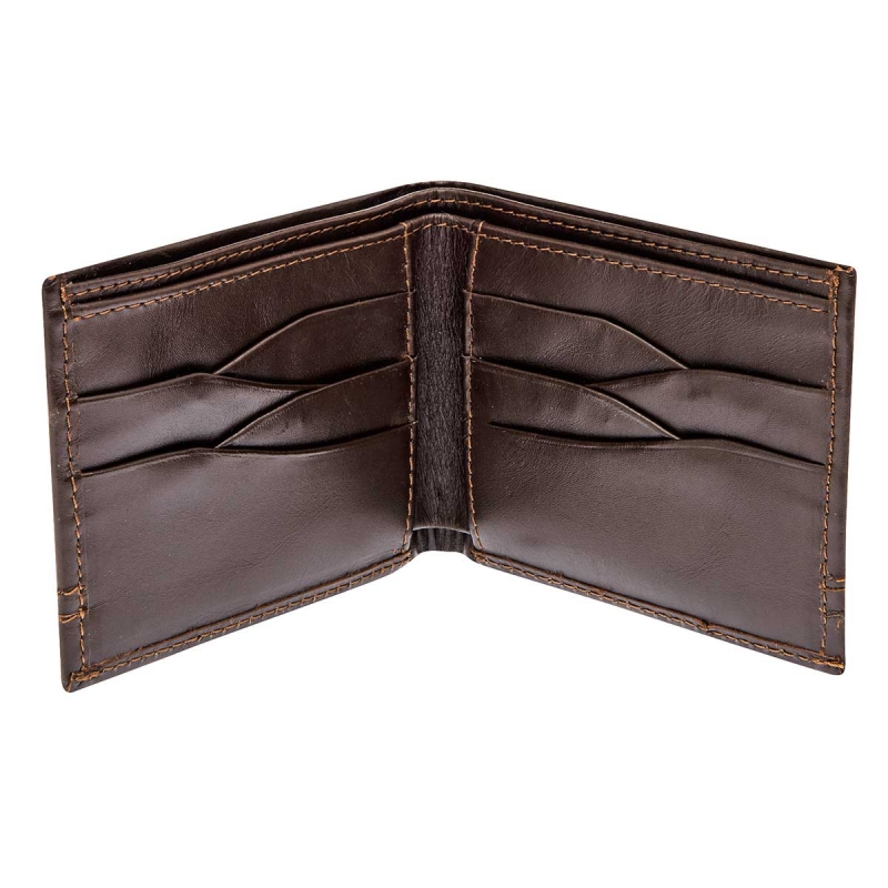 De estilo Formal. Rígida pero suave al tacto. Con doble espacio trasero para billetes. Compartimientos entrelazados para tarjetas. Logo externo.