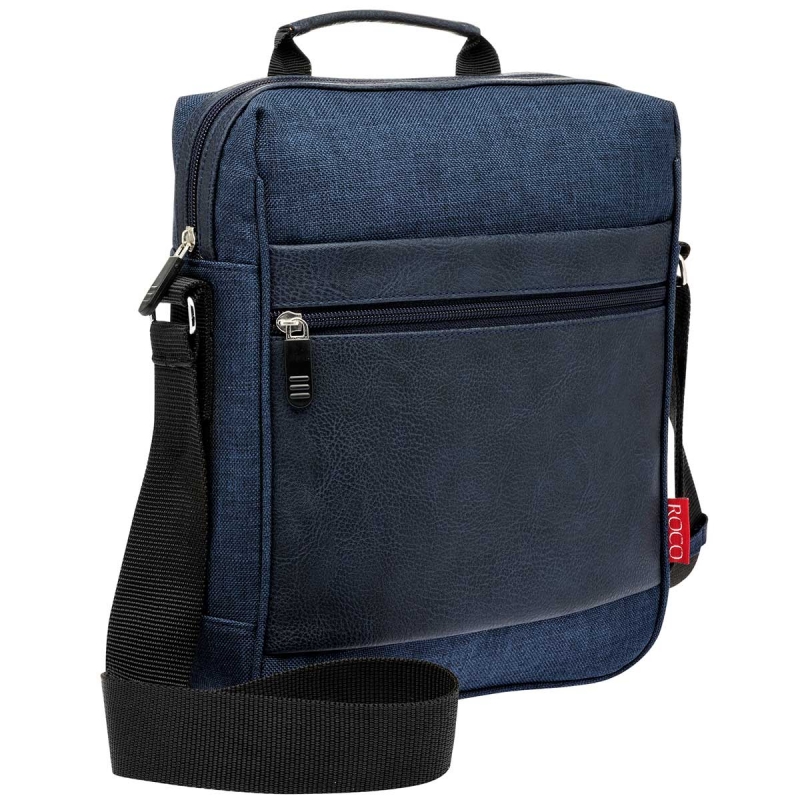 De estilo Formal-Casual. Rígido pero suave al tacto. Tela tipo mezclilla. Cierre en la parte alta. De gran espacio interior. Con bolsa frontal. Bolsa amplia en la parte trasera. Forro interno. Asa y correa de seguridad ajustable para llevar al hombro o crudada.