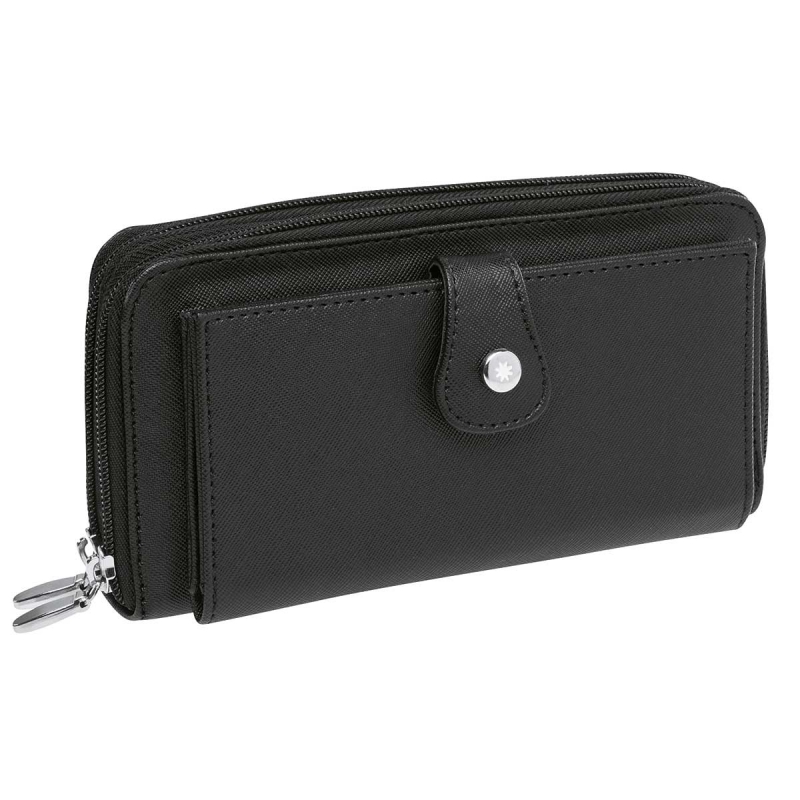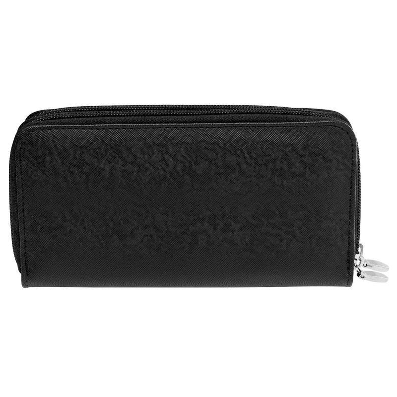Con amplio espacio interior. Abertura con cierres. Doble área disponible. Cuenta con multiples compartimientos para billetes o tarjetas. Bolsillo exterior con broche. Detalles metalizados. Para un uso Formal o Casual.