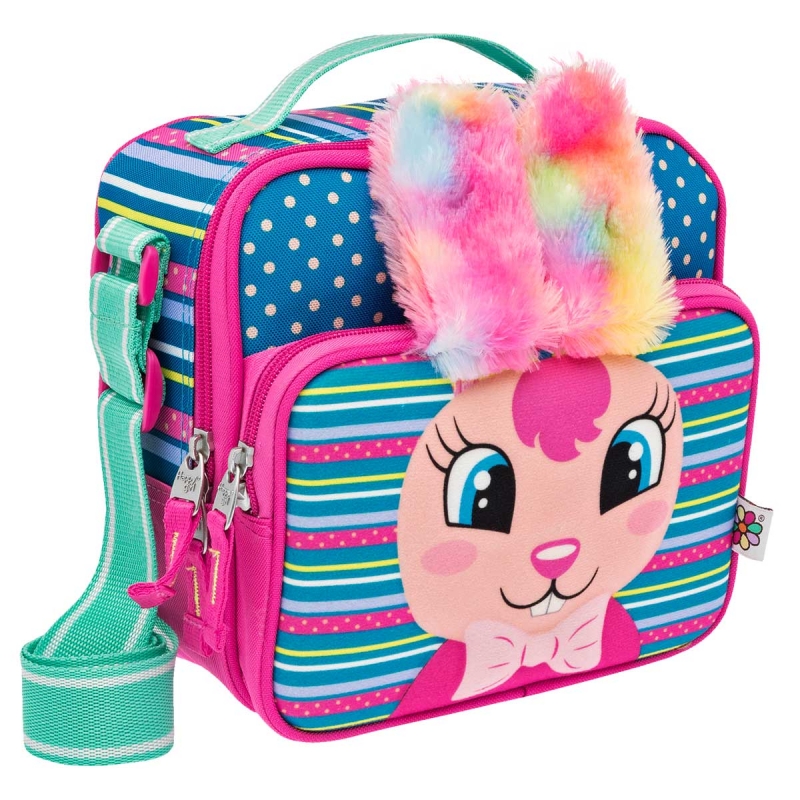 Cuenta con gran espacio interior. Banda elástica trasera. Forro Térmico. Bolsa frontal para utensilios. Aditamento para botella. Con diseño 3D. Orejas de peluche. Bolsa con cierre al frente. Respaldo Suave, Correa ajustable.