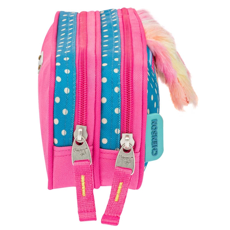 Cuenta con gran espacio interior. Doble Bolsa con cierre superior. Con diseño 3D. Orejas de peluche. Cuerpo Tornasol. Suave al tacto.