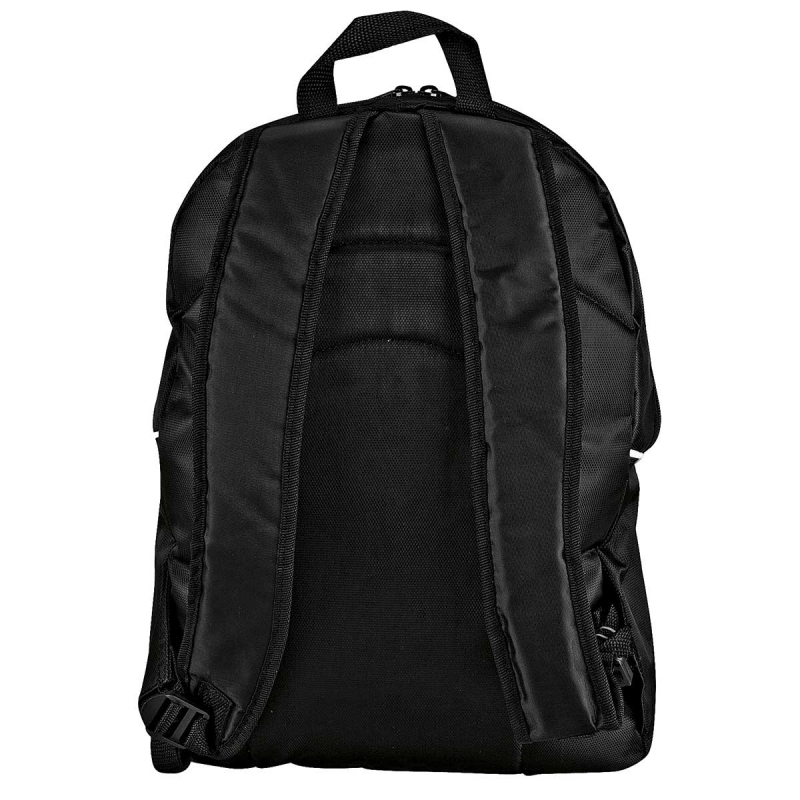 Con amplio espacio interior debido a su diseño. Cuenta con bolsa al frente que por su forma da un acceso total al interior. Repelente. Con asa superior y correas acolchadas. Cómoda y páctica.